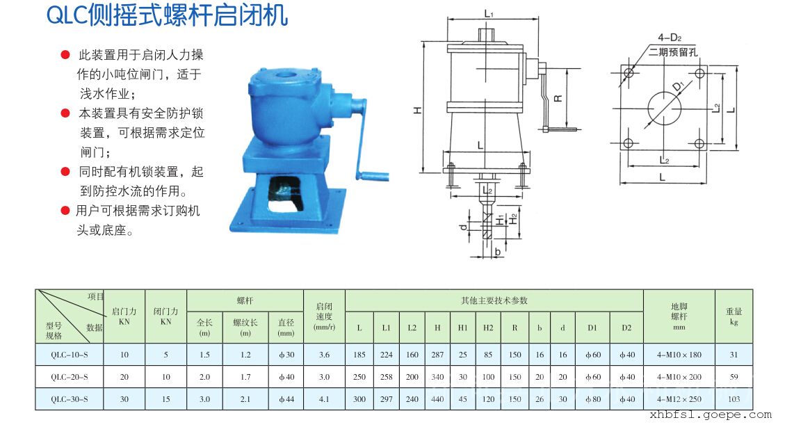 手动:采用螺杆式启闭,方便、轻巧、可靠。