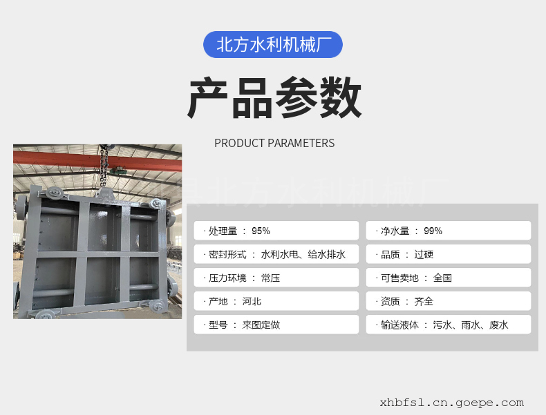 本设备主要由门框、闸板、密封圈及可调式锲型压块等不见组成。