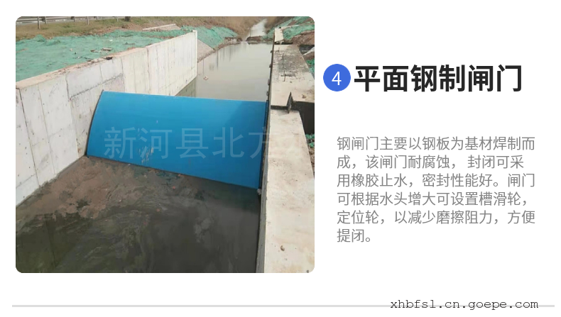 平面定轮钢制闸门承受水头较大,外形规格可定做,平面定轮钢制闸门用于水利水电,市政建设,给水排水,水产养殖,农用水利建设等工程,钢闸门主要以钢板为基材焊制而成,该闸门耐腐蚀, 封闭可采用橡胶止水,密封性能好。闸门可根据水头增大可设置槽滑轮,定位轮,以减少磨擦阻力,方便提闭。平面定轮钢制闸门结构特点: