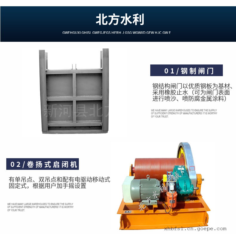 平面闸门(PGM):承受水头较大,外形规格可定做,适用于水利水电工程中工作闸门、检修闸门等。
