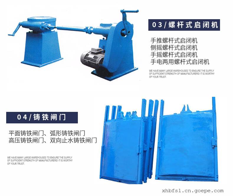 插板闸门(CBZ):三面止水,密封性能好,适用于渠道安装。