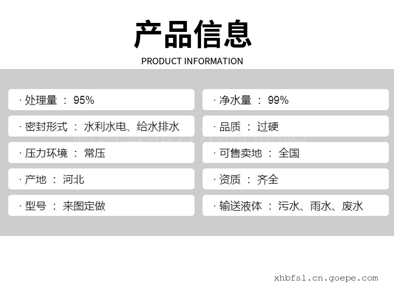 4、各种规格橡胶止水带及伸缩缝橡胶带、拦污栅、清污机系列。