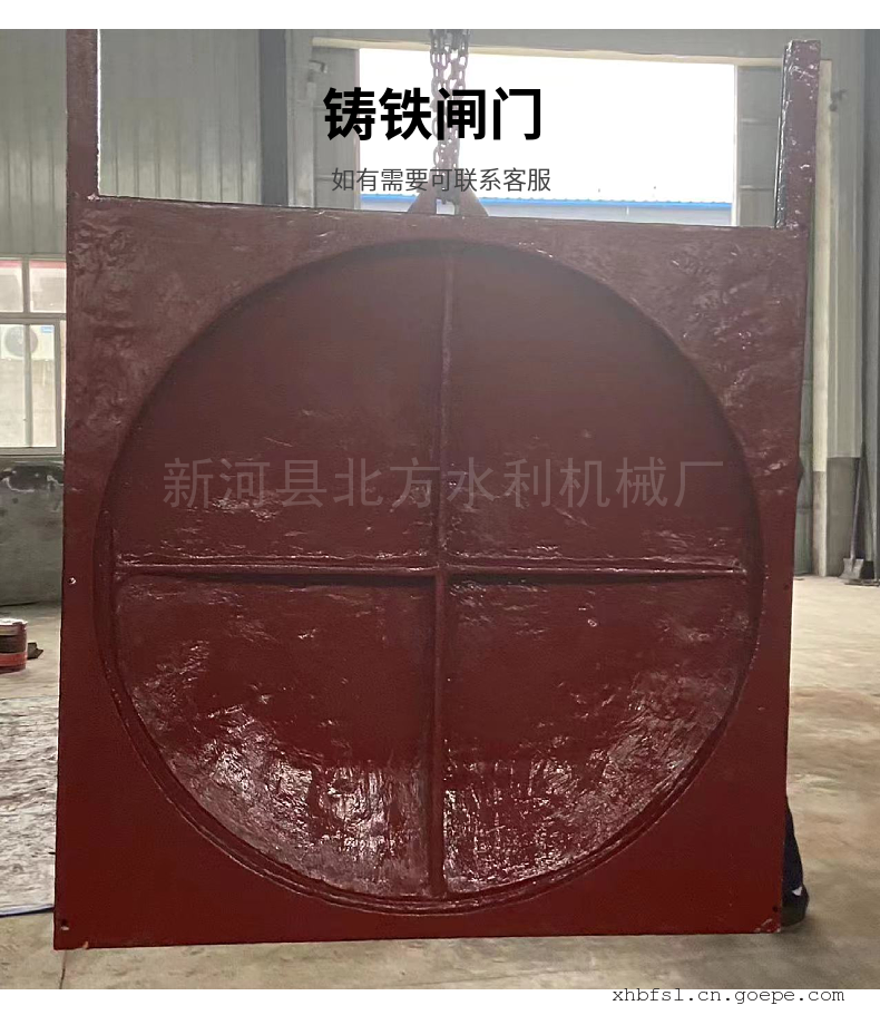 工作原理:铸铁闸门在启闭机升降的作用下,使闸板在闸框滑道内上、下滑动,能部分或全部的开启和关闭过水孔口,达到调节流量和控制水位的目的。