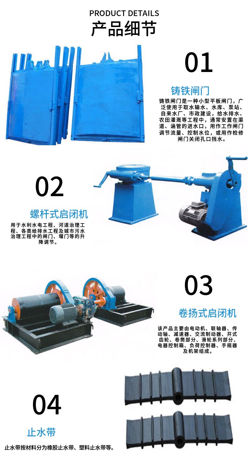 插板闸门(CBZ):三面止水,密封性能好,适用于渠道安装。